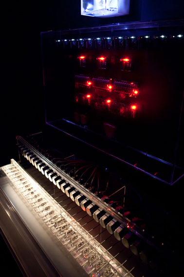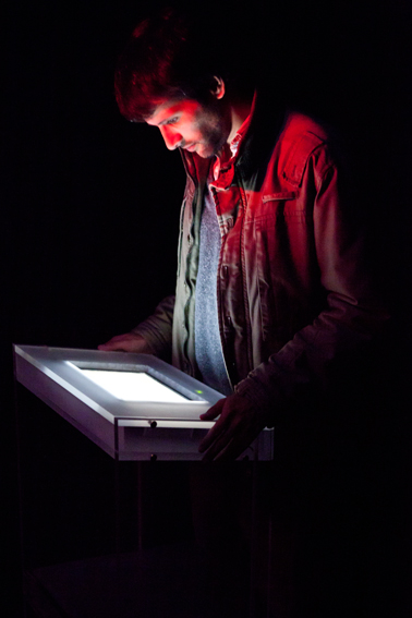 Displayed on a screen, in this sort of "technological altar” images anointed with some kind of mysticism can be inferred, images that may well refer to the Most Sacred Heart of Jesus, accompanied by the surround sound of the heart and breathing rate of a body at rest. Heart beats are accelerated till reaching the typical beats of a pulsing heart, whose frequency will modify the ignition of led sets, thus generating an electronic prototype of “altar”. Through a system of microprocessors, an original pacemaker of the late 60s will be sending pre-programmed signals to a “robot” with 30 metallic arms intended for typing messages which will serve as the spiritual homework habitually recommended by priests to the faithful in the Most Sacred Heart of Jesus Church.